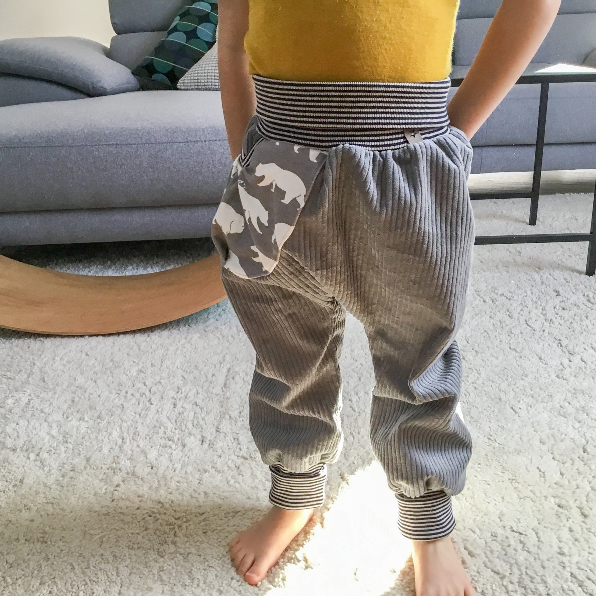 Wie immer mit Liebe zum Detail und der hochwertigen Fertigung von Kinderkleidung entstanden. Eine sehr robuste, langlebige Mitwachshose, die über 3 Größen passt.