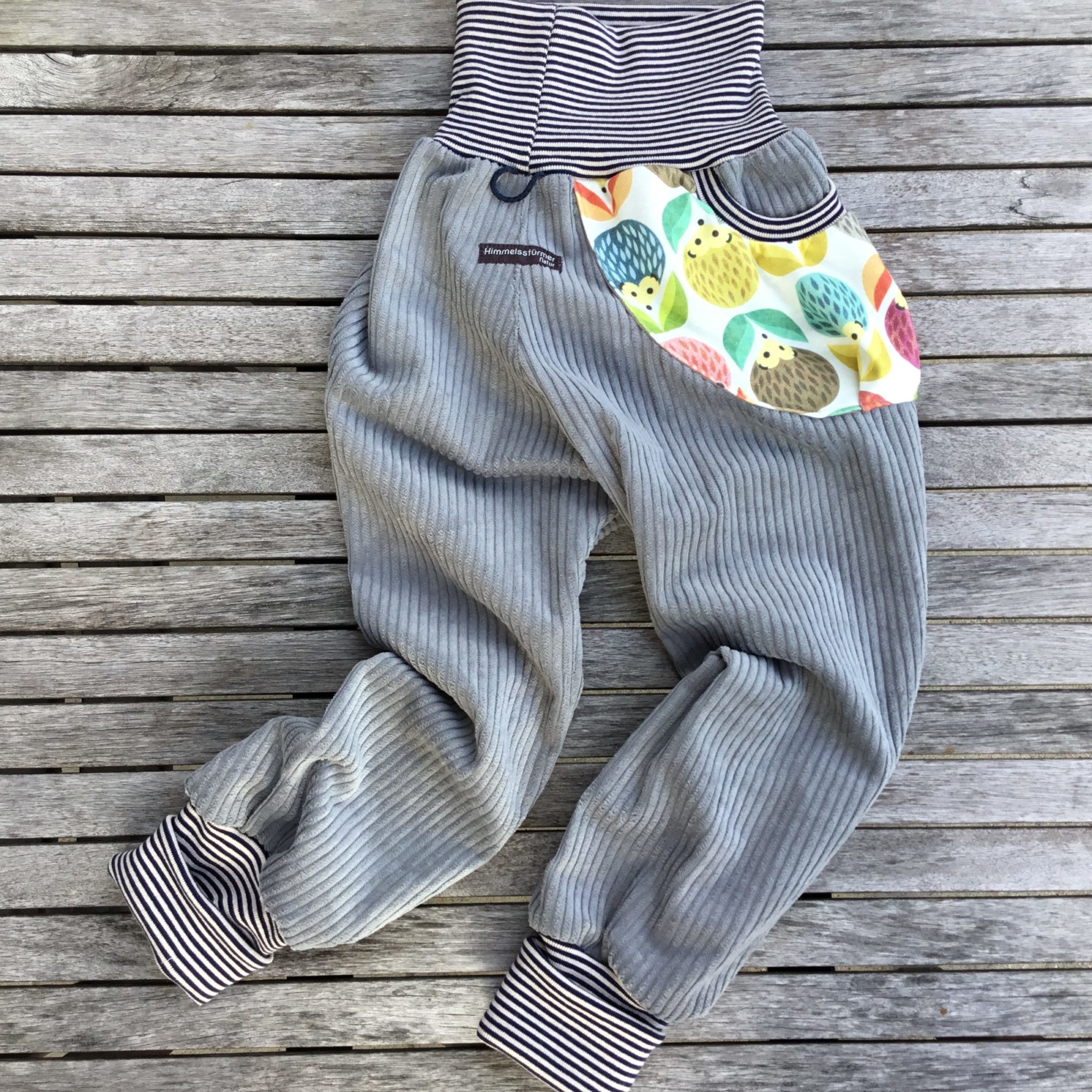 Unsere neue Cordhose “Igelparade” ist eine weitere Variante der sehr beliebten Himmelsstürmer Räuberhosen.
