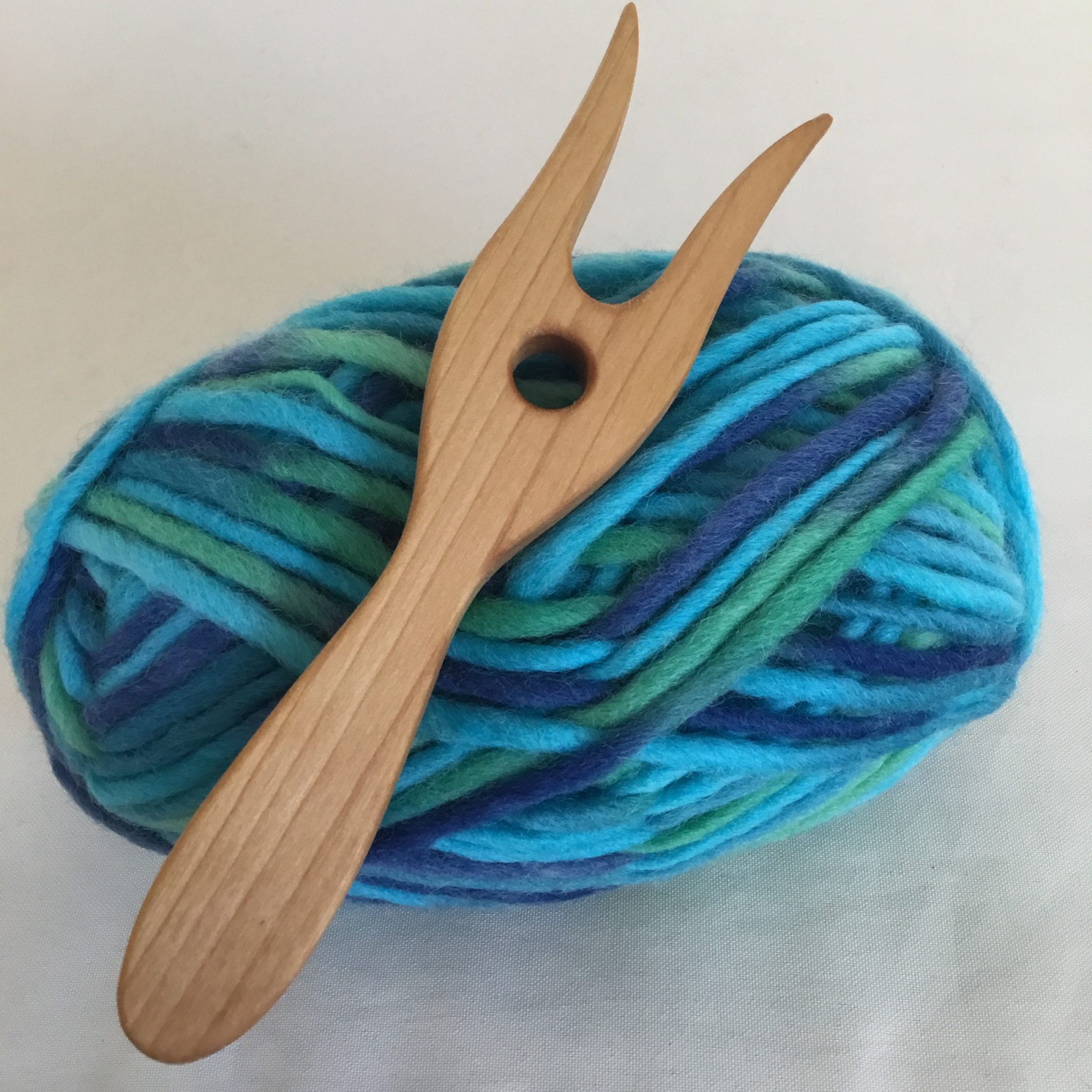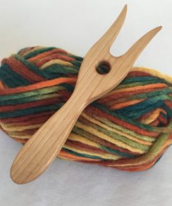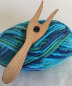 Im Lieferumfang enthalten: Ein Knäul Filzwolle aus100% Schurwolle, eine Strickgabel aus Holz (geölt) und eine kleine Anleitung.