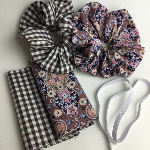 Mit diesem Nähset lassen sich ganz einfach 4 Scrunchies herstellen. Im Paket dabei sind 2 verschiedene Stoffe für je 2 Scrunchies und Gummi für 4 Stück. Ebenso eine ausführliche Anleitung zum selber nähen.