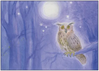 Postkarte Uhu bei Vollmond