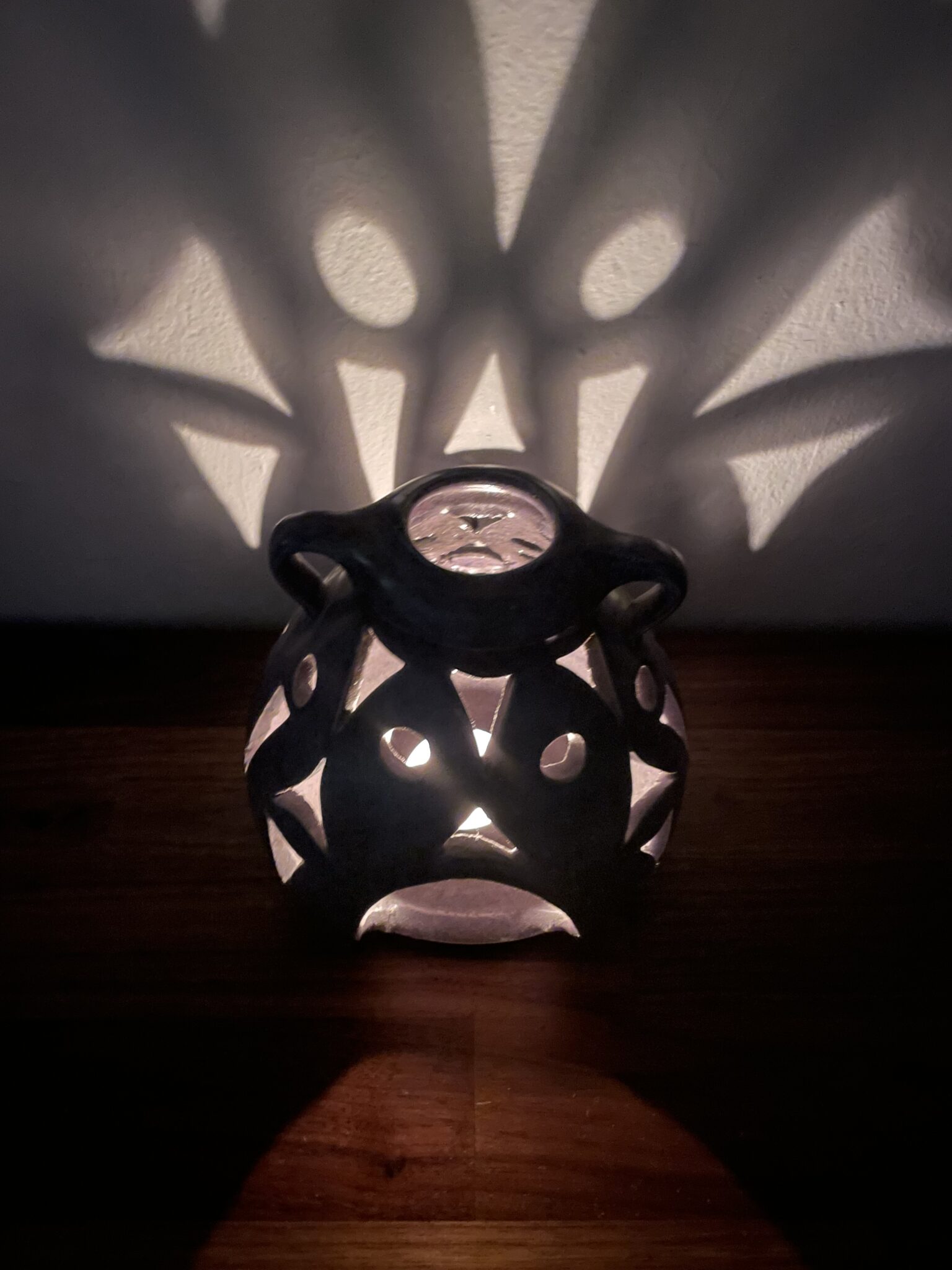 Stimmungslicht für Teelicht handgetöpfert blauviolett
